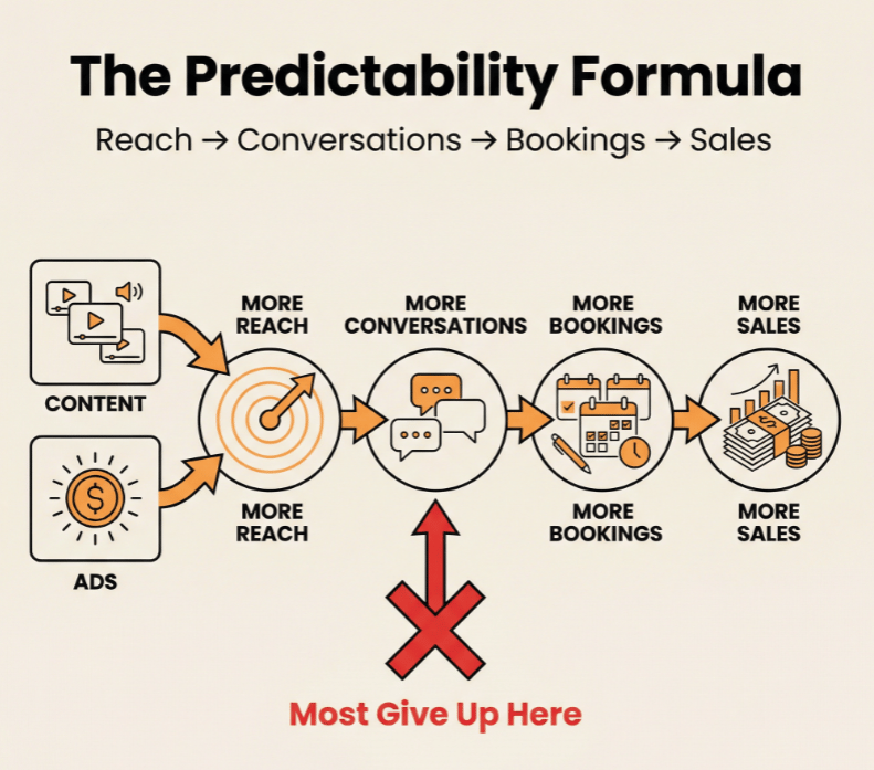 As soon as you figure this part out, as soon as you get more reach, more conversations, more bookings, and you convert them into sales, this is going to run extremely predictably for you.