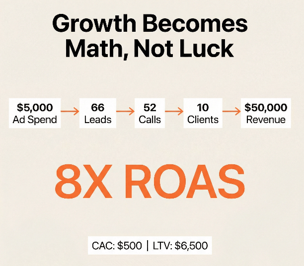 If you want 20 clients next month instead of 10, you spend $10,000 instead of $5,000.