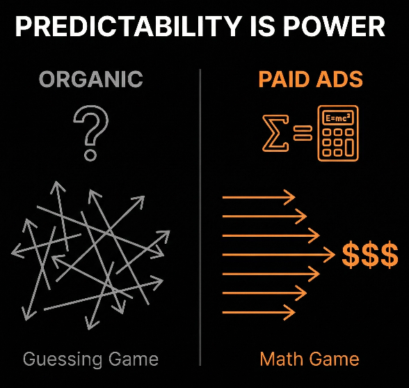 You can decide how many clients you want next month, and you can spend the exact amount to get them.