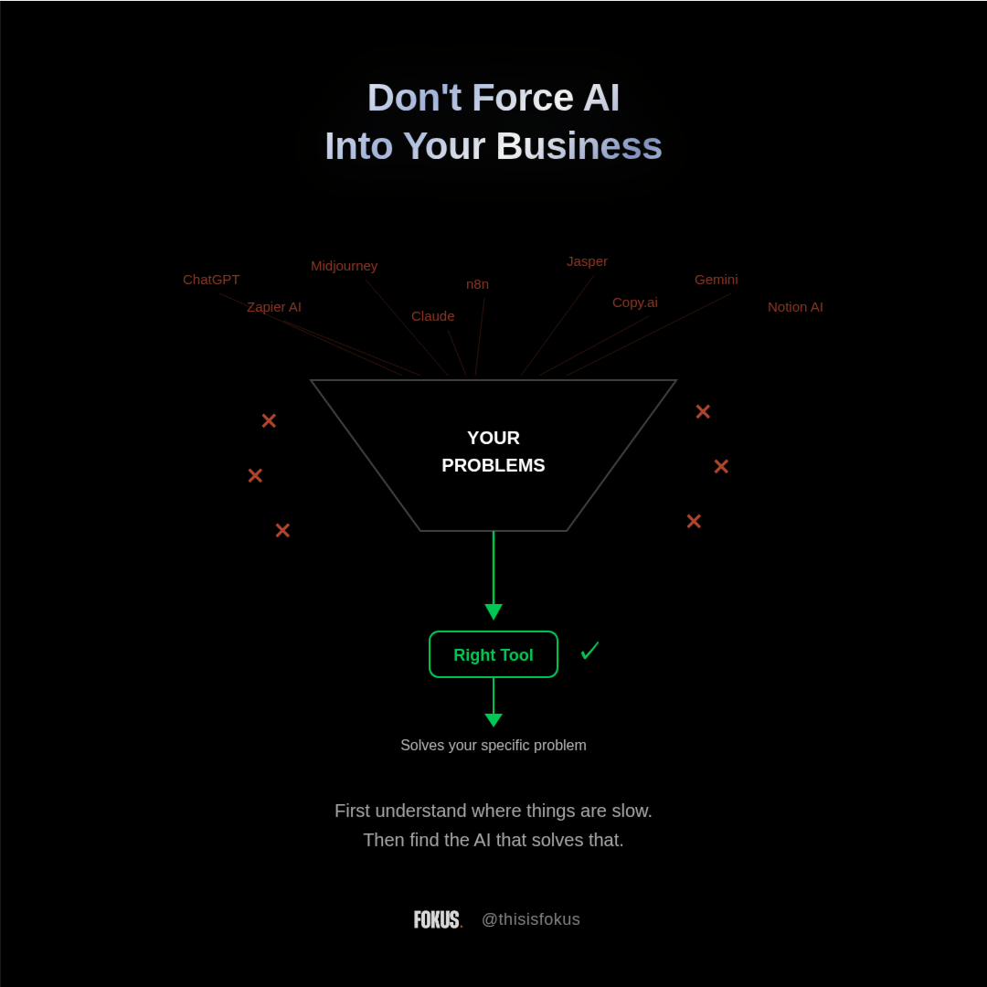 So be aware of AI, but don't be negligent. First, understand where you need it. Write down where things are slow in your business, and then actively look for an AI that can solve that specific problem.